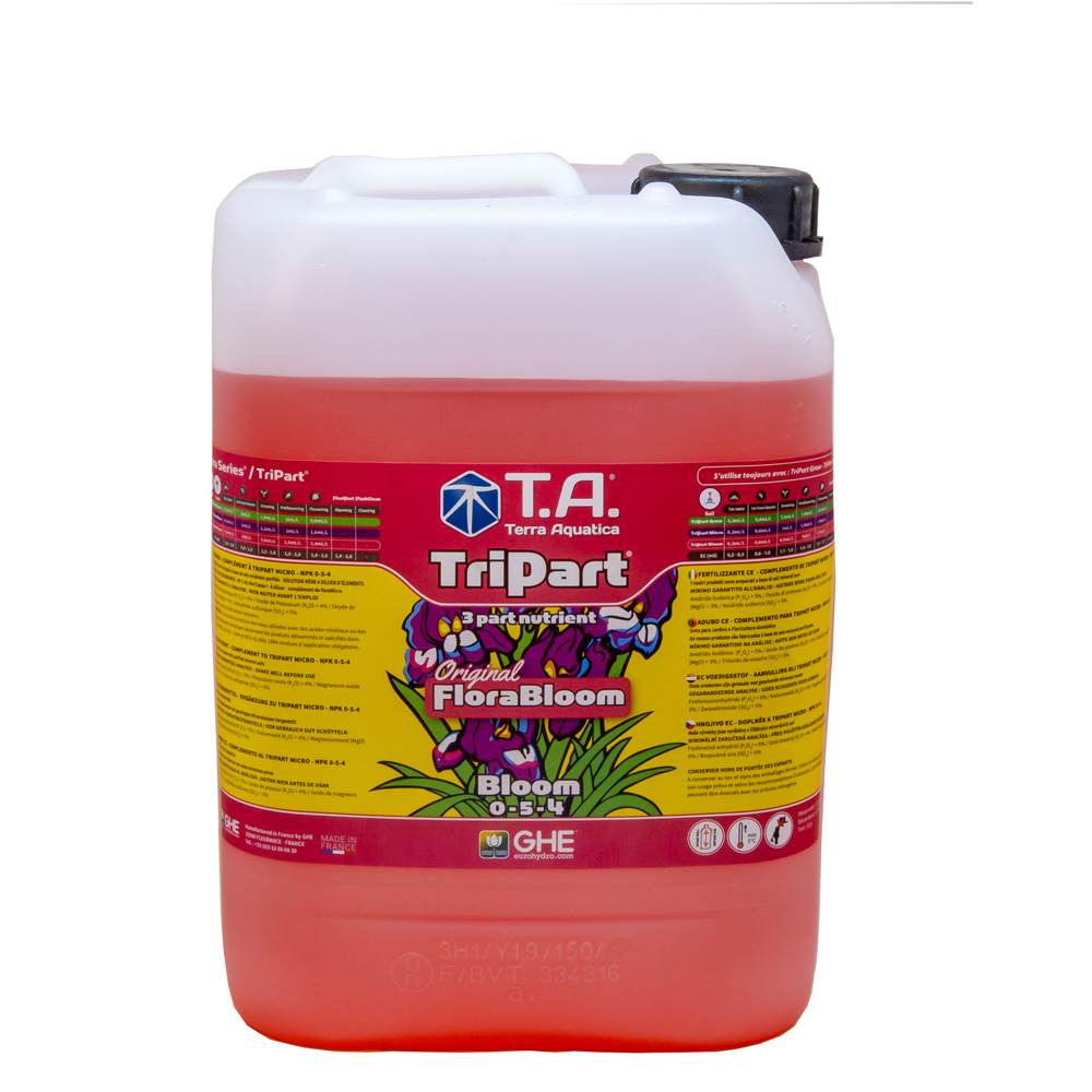 TriPart Bloom: Fornisce la composizione di fosforo e potassio di cui le tue piante hanno bisogno per aumentare la formazione di radici e la salute durante la crescita, ed aiutare a completare il loro potenziale genetico al massimo durante la fioritura e fruttificazione. Usa quantità più basse durante la crescita, e più alte in fioritura.
